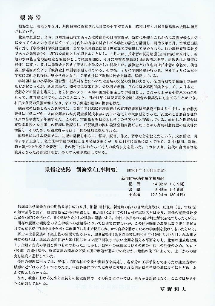 学校を設立した。この「観海堂」という学校名は氏家晋の命名によるものある。なお、この建物