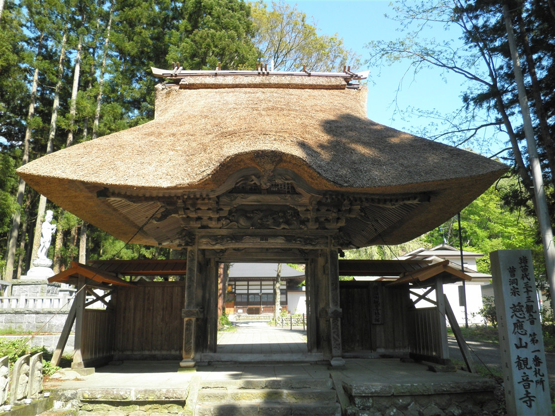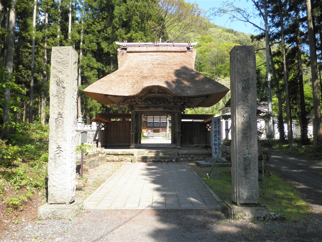 観音寺は明治20年8月の火災で縁起など文書が焼失したため、山門建立についての詳細は不明ある。 しかし、山門は数度の火災にも類焼を免れ、徳川初期の会津式唐門、すなわち入母屋形式で正面に唐破風をつけた様式を残している。 特に、欄間の浮き彫りの手法、柱の彫刻などは桃山建築の様式を見るに貴重な山門である。猪苗代町教育委員会