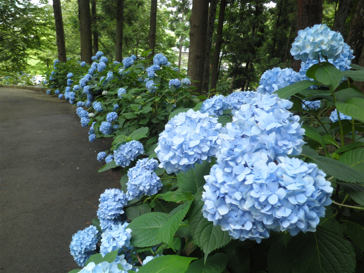 こんどは咲き誇っている感じでベスト。ほとんどの紫陽花が薄青なのが難点。