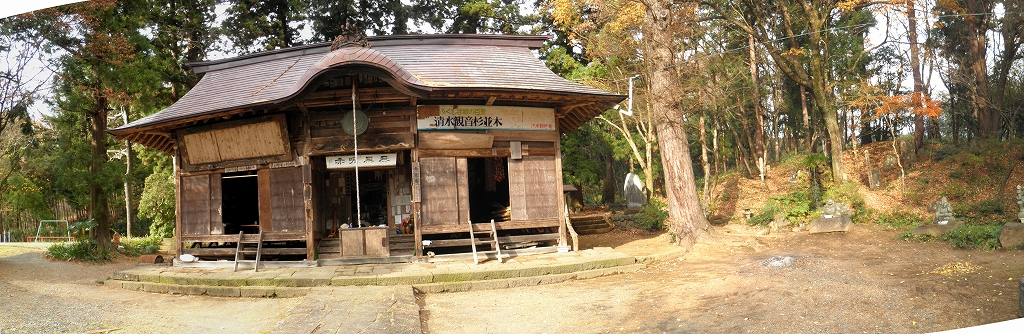 清水観音(きよみずかんのん) 2010.11.26 清水観音は、信達三十三観音八番札所となっており、参道入口右手に市指定天然記念物の大樅:根回約8m、 樹高約38m、樹齢約350~400年(推定)、参道の階段両側に杉並木が美しい。福島市町庭坂地内