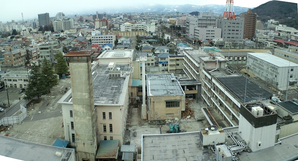 福島市役所9階展望ロビーから旧庁舎を望む 2011.2.11 このところ仕事がいぞがしく、また、雪・雨の休日で取材に出かけられません。3・4月は花粉症でこれまた行けません。近くの画像で誤魔化して...しまっています。 p(´⌒`。q)グスン