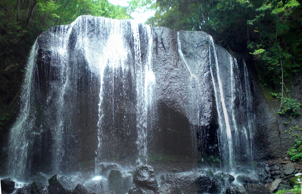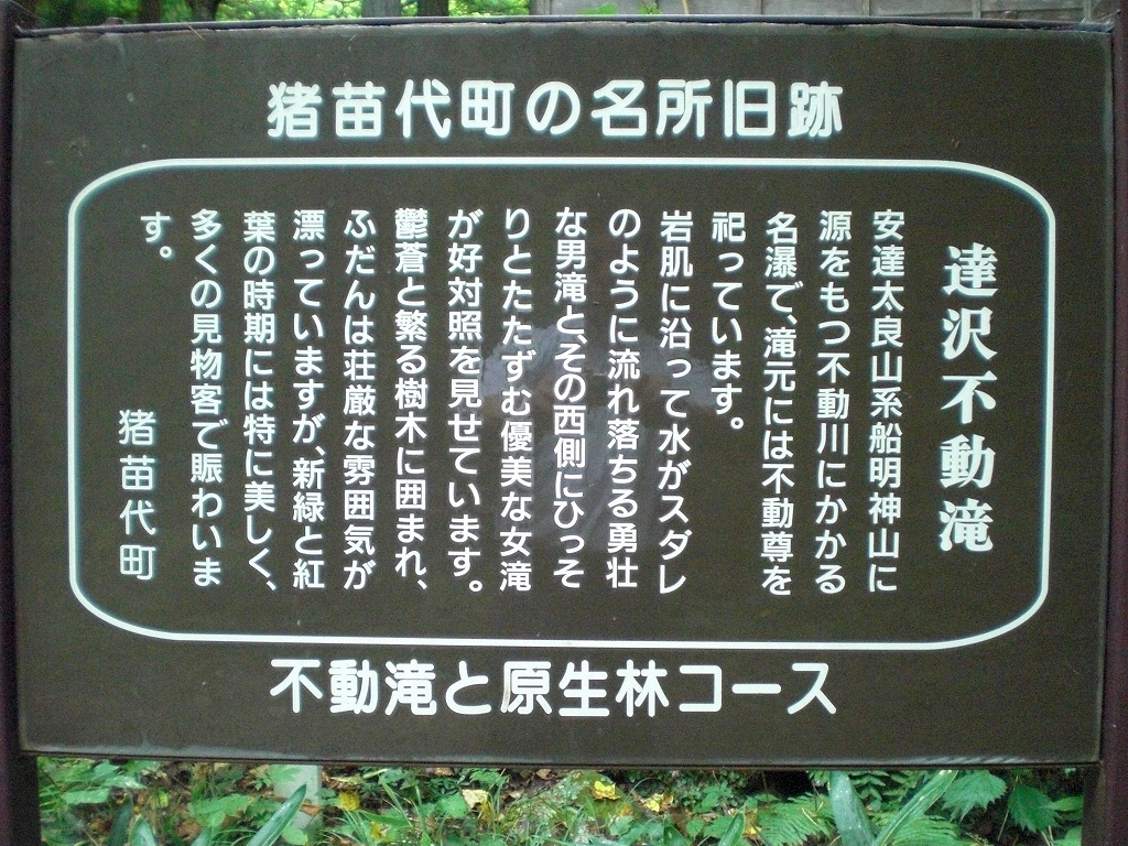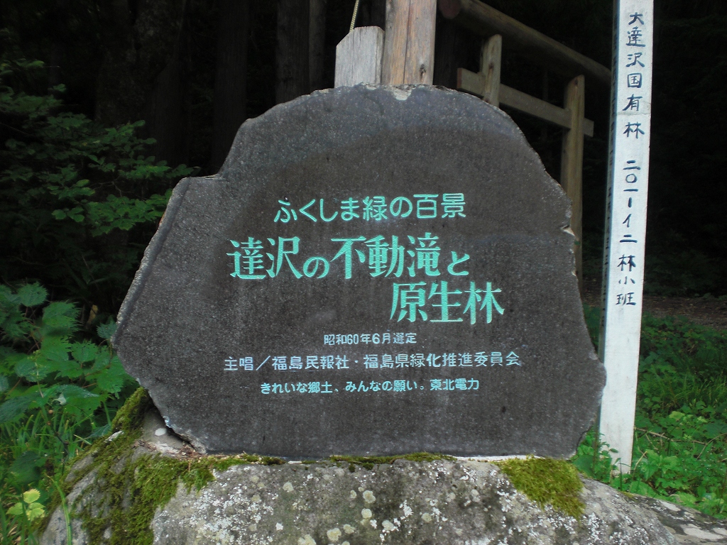猪苗代町の中ノ沢温泉から南東方面へ3kmほど行くと達沢集落を抜け、さらに不動川沿いに伸びる林道(巾員4mほどの砂利道)を奥へ奥へ1~2kmほど上流へ入ると、突き当たりに達沢不動滝入口(駐車場)に到着します。林間の参道を約5分歩くと正面に男滝が、左側に女滝があります。達沢不動滝は「ふくしまの水30選」に選ばれている清流です。 熊出没注意地区です。念のため
