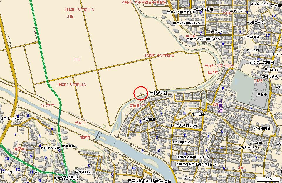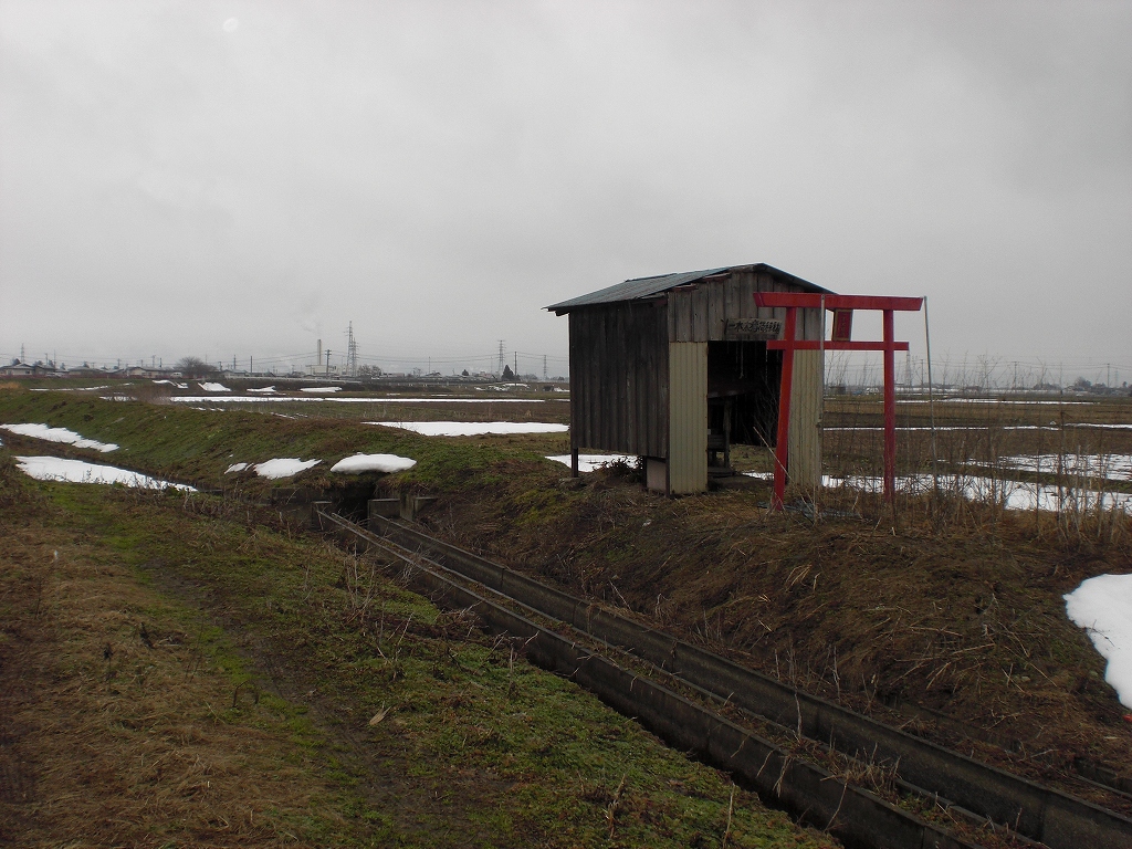 会津若松市神指町中四合字権現堰地内、湯川の辺にある『一本木稲荷神社』