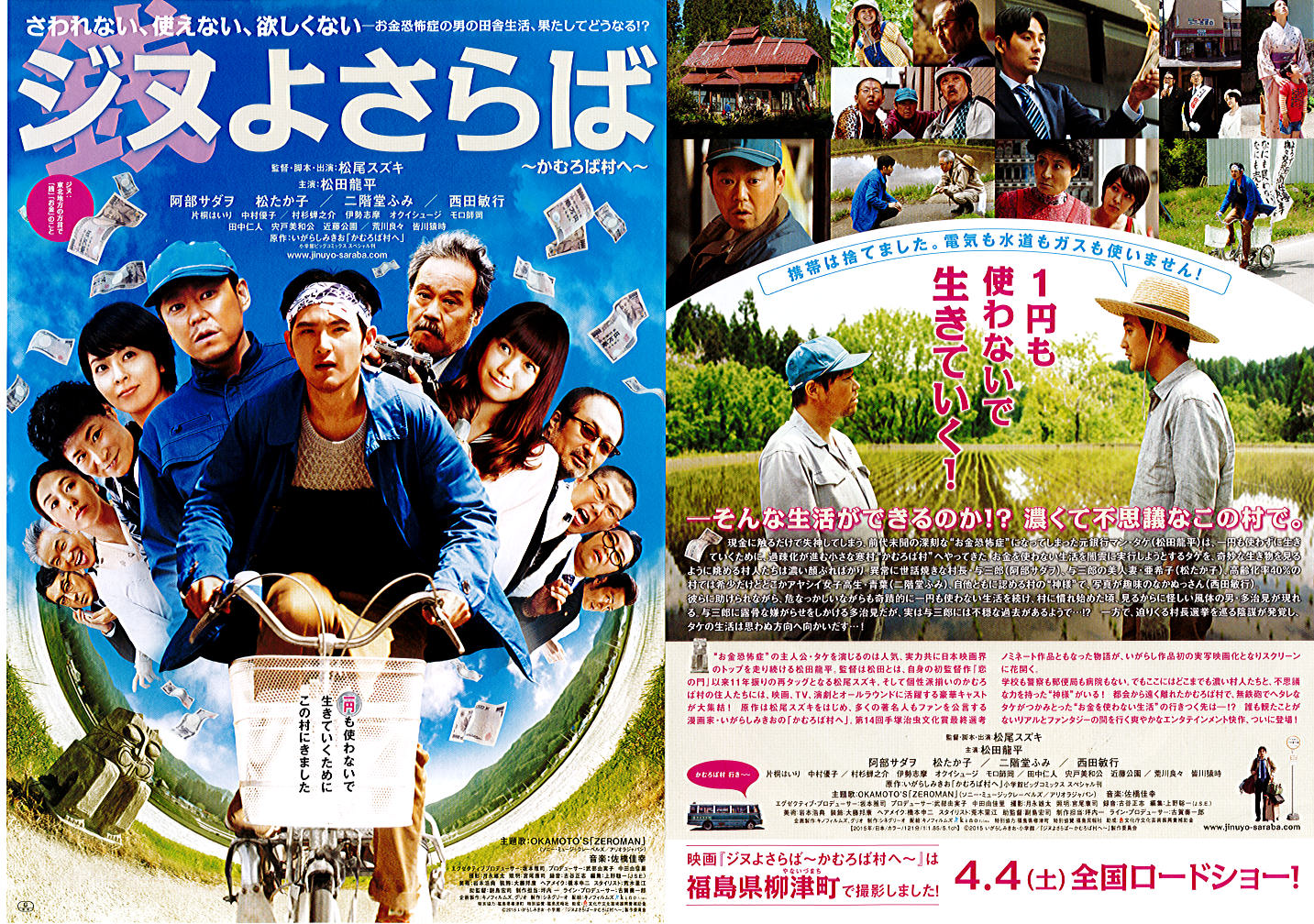 ジヌ(錢)よさらば(柳津町) 4月にスカパーで何となく見ていたら、つい引き込まれた映画「ジヌよさらば」のロケ地が柳津町だった。2015年4月公開、松尾スズキ監督(出演)、松田龍平主演、阿部サダヲ、松たか子、荒川良々、片桐はいりなど 野老沢=ところざわ=所沢 (東京オリンピックエンブレム制作者は野老朝雄氏)何故トコロ?