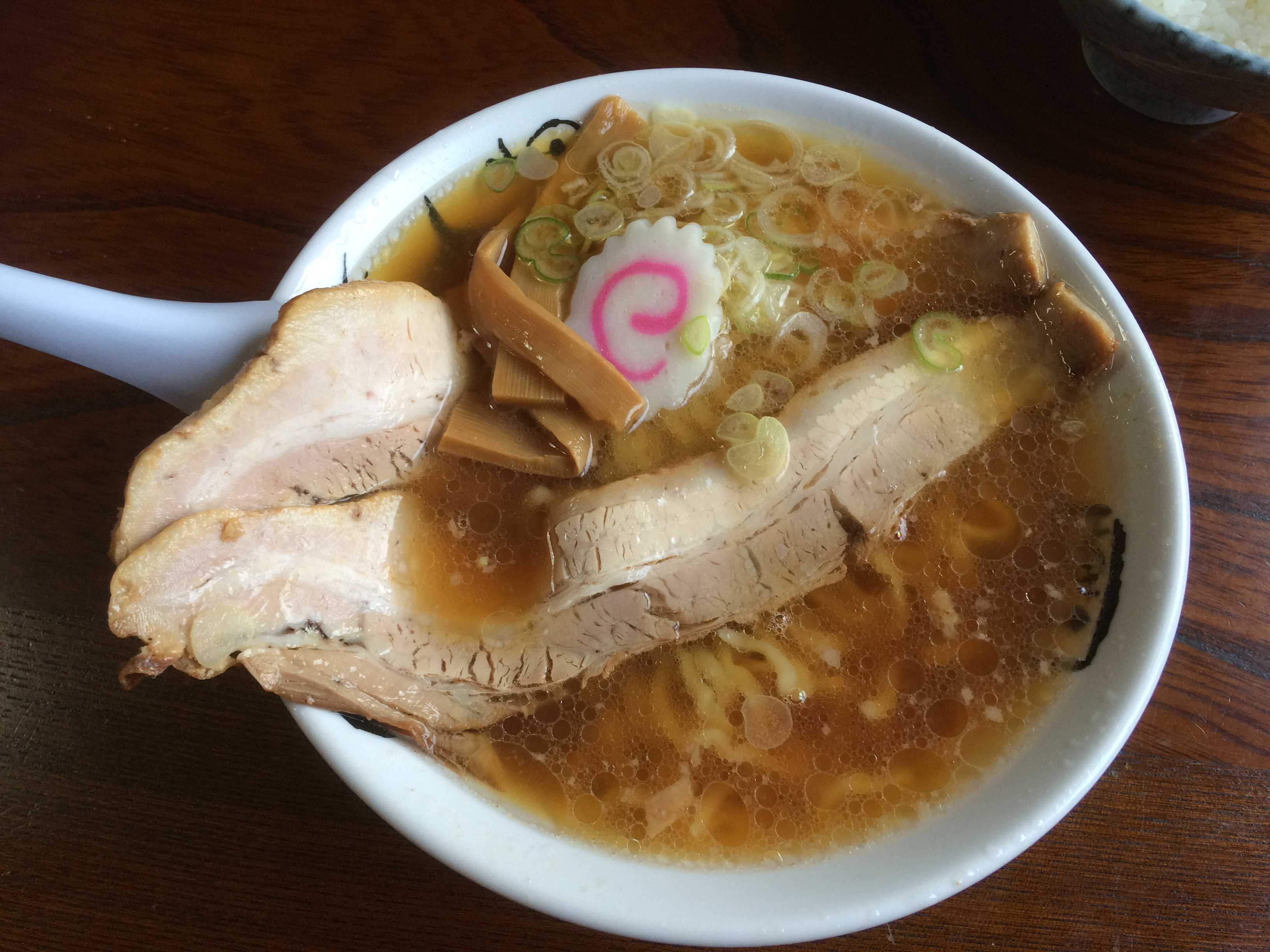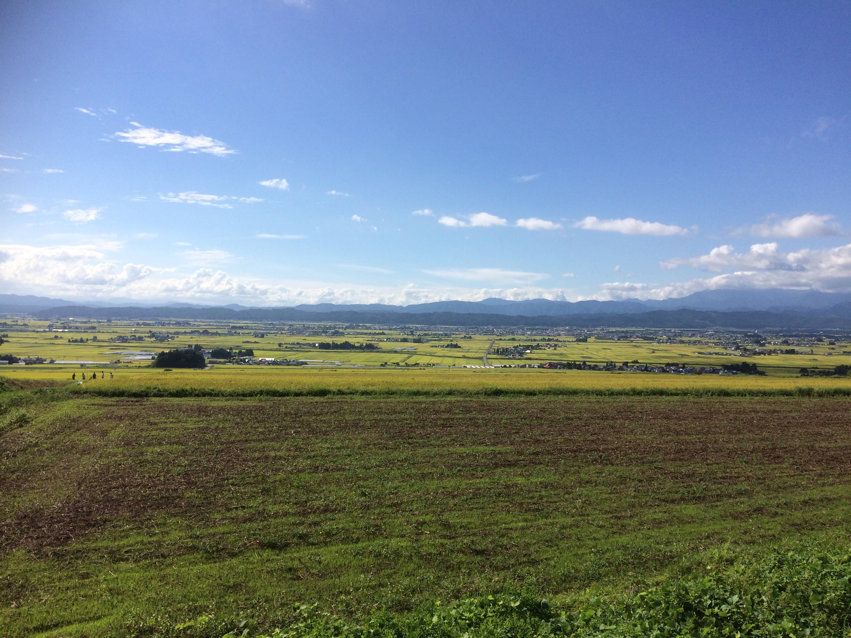 雄国山山麓の県道337号喜多方河東線、「恋人坂」からの眺望。喜多方市内が一望。 ついでに、長谷川食堂の2枚のせ