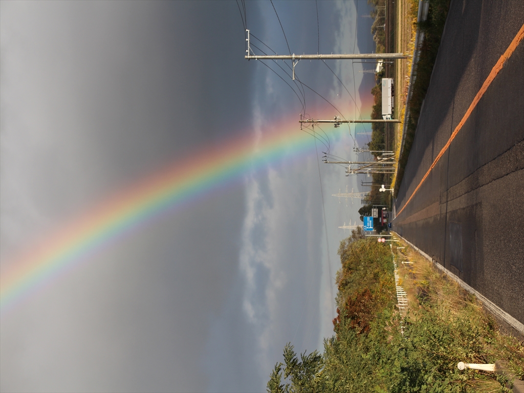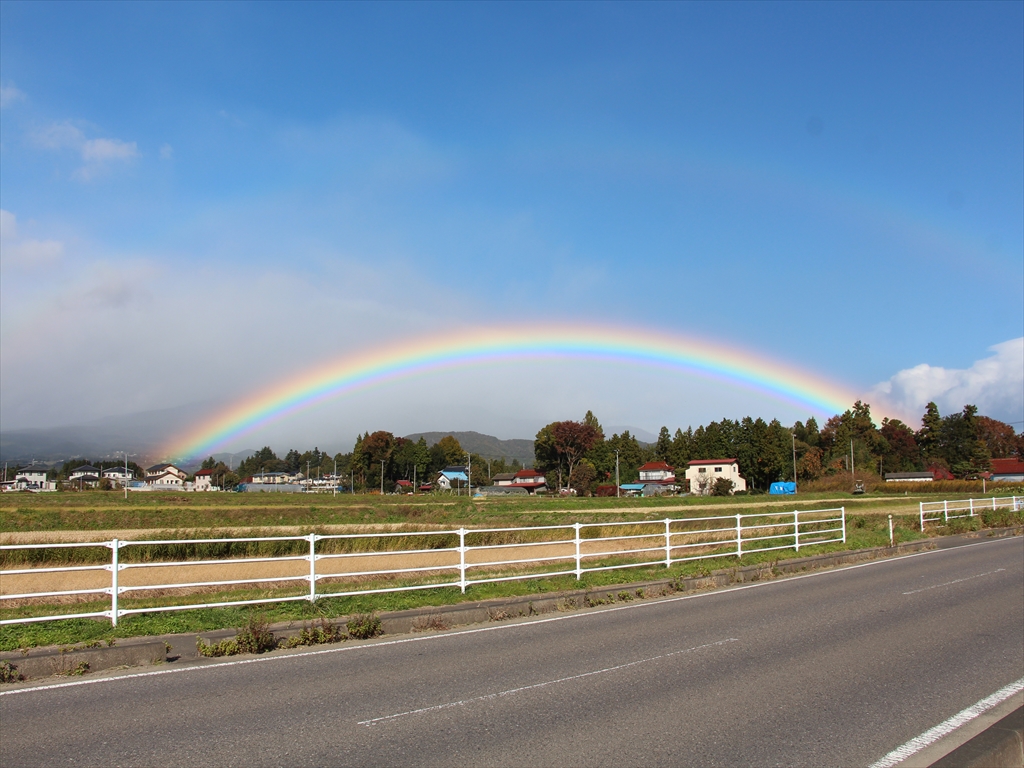 鮮やかな虹。大玉村地内で。そこかしこで車をとめ写メしてました。