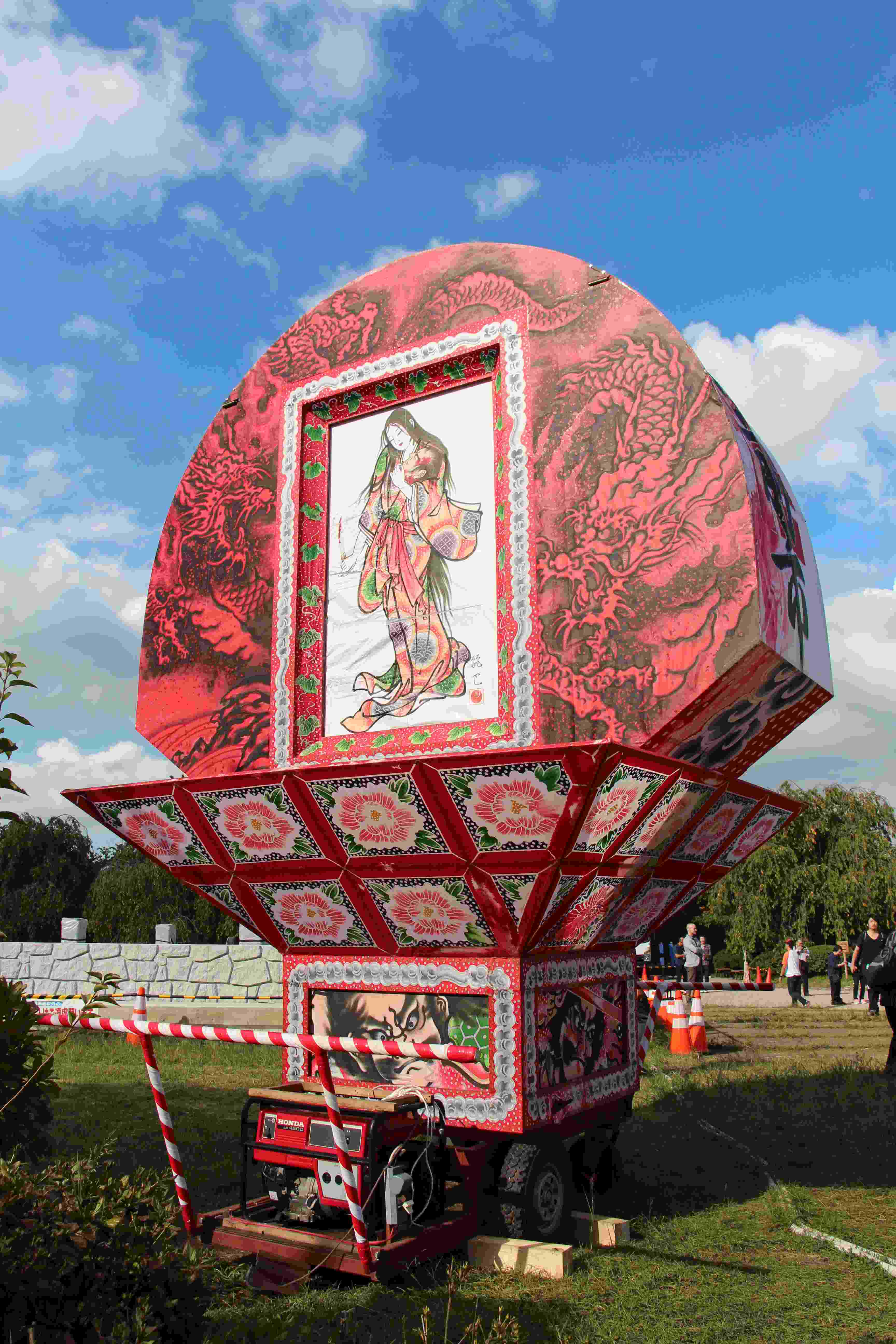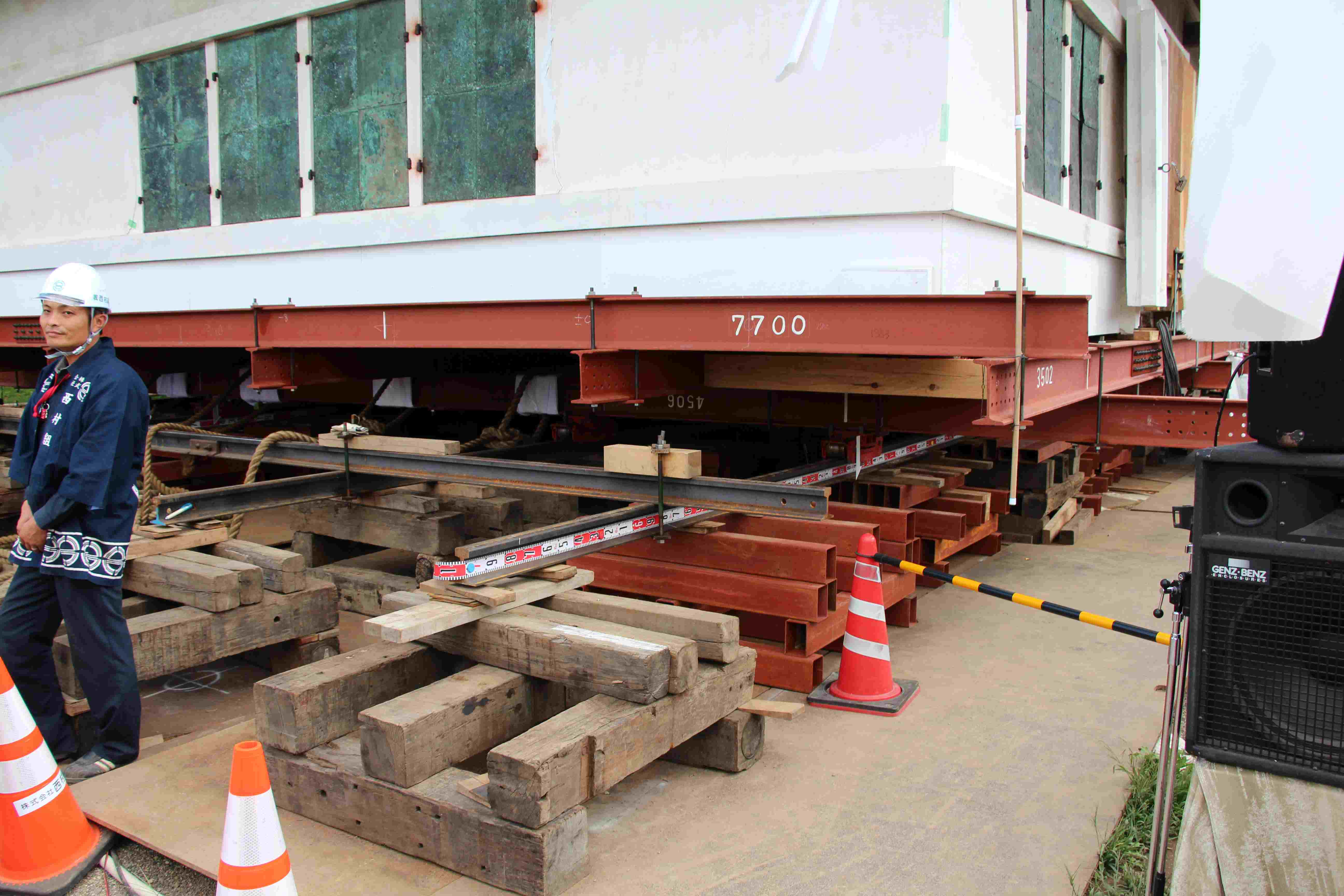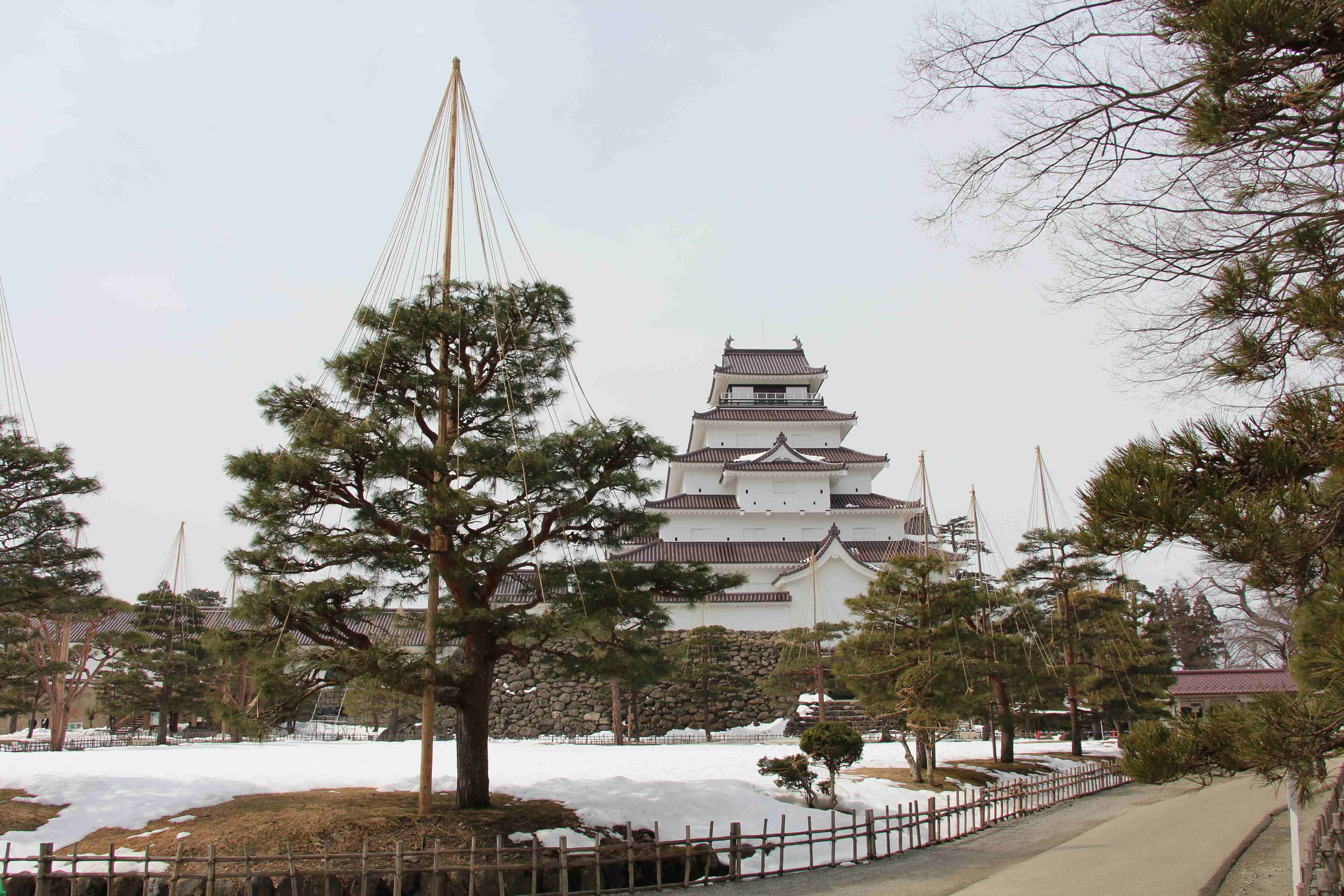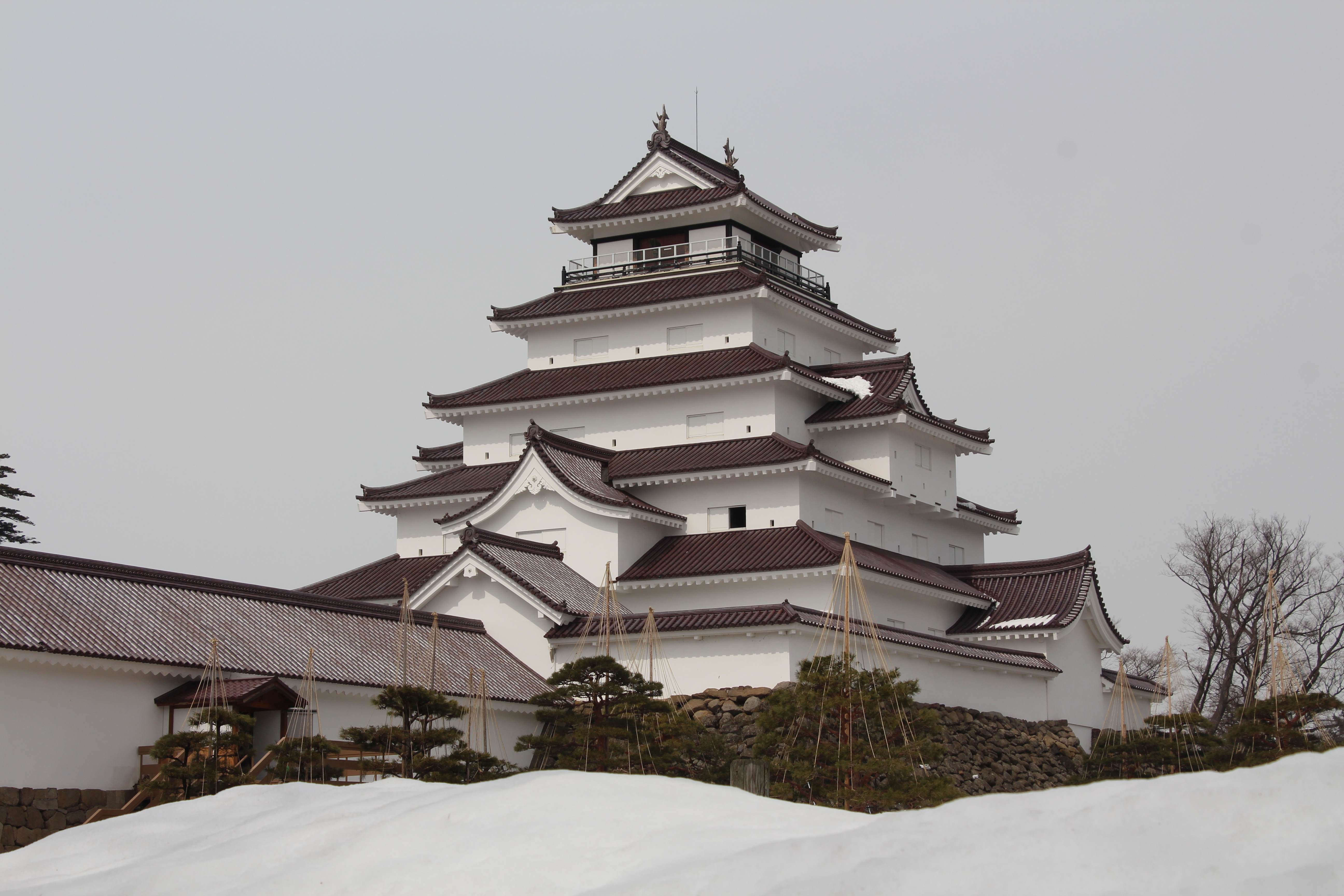 重要文化財「弘前城」 史跡 津軽氏城跡「弘前城」昭和27年3月29日史跡指定 弘前城は、津軽藩主代々の居城で慶長十六年(1611)に二代藩主津軽信枚によって築かれた城である。 面積約492,000㎡(約14万9千坪)を有し、本丸、二の丸、三の丸、四の丸、北の郭、西の郭の六郭よりなり、三重の濠と土塁でめぐらされた城郭である。 現在城跡には、天守閣をはじめ隅櫓三棟、城門五棟の建造物が残されおり、いずれも重要文化財に指定されている。 天守閣は、石垣修復のため曳家工法により仮設土台まで移動中であり、人力曳家の体験が行われている。 755.5+426.0㎞