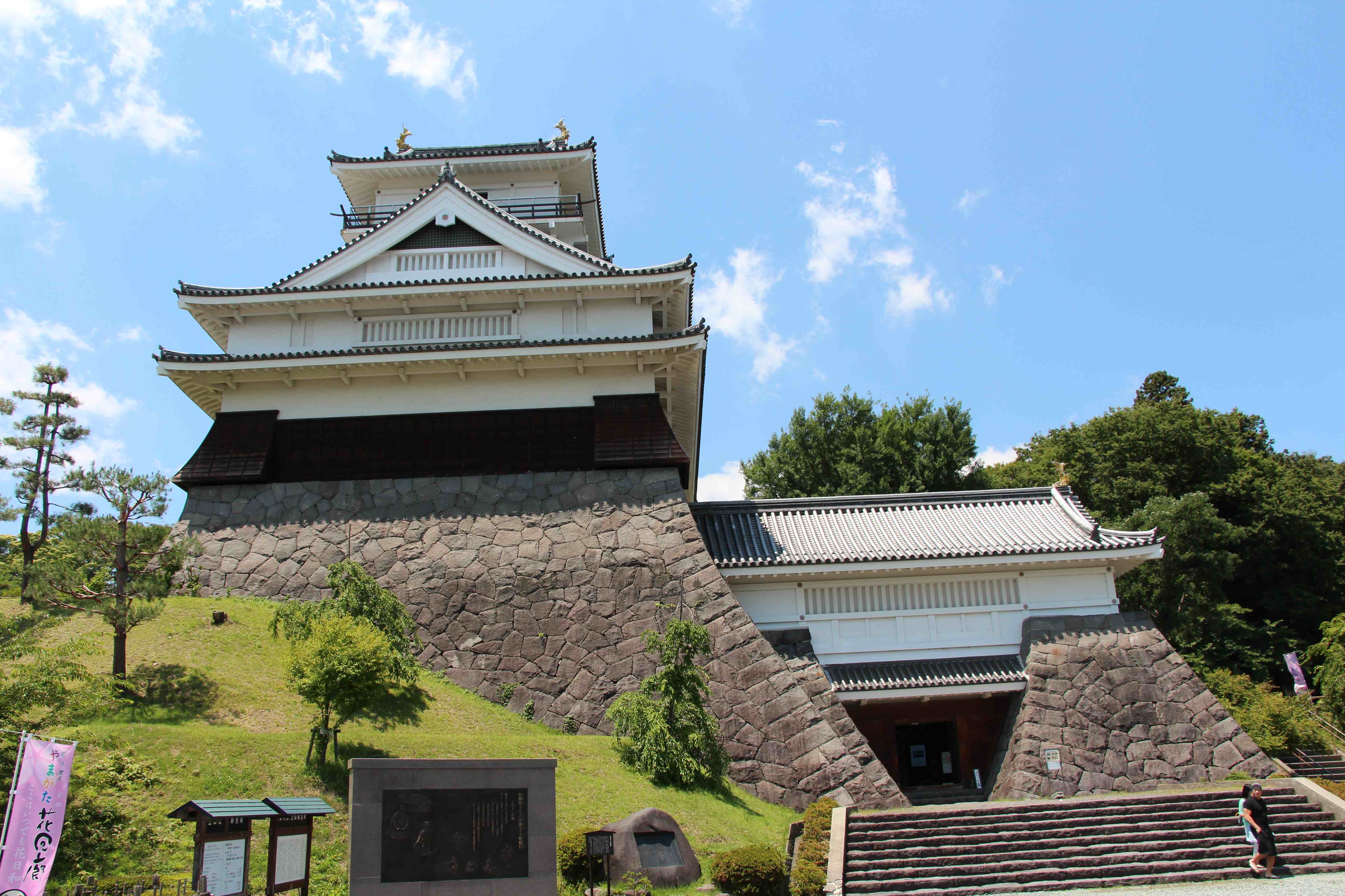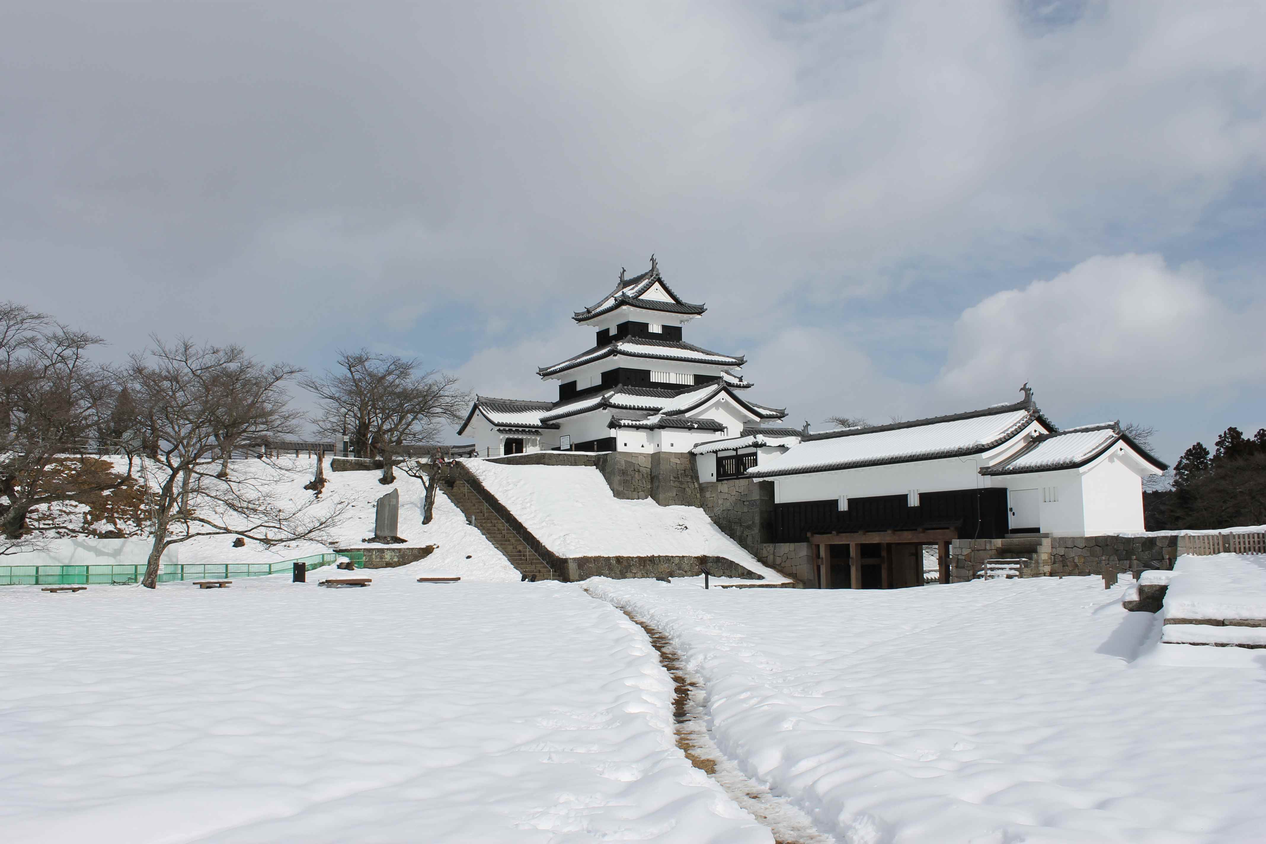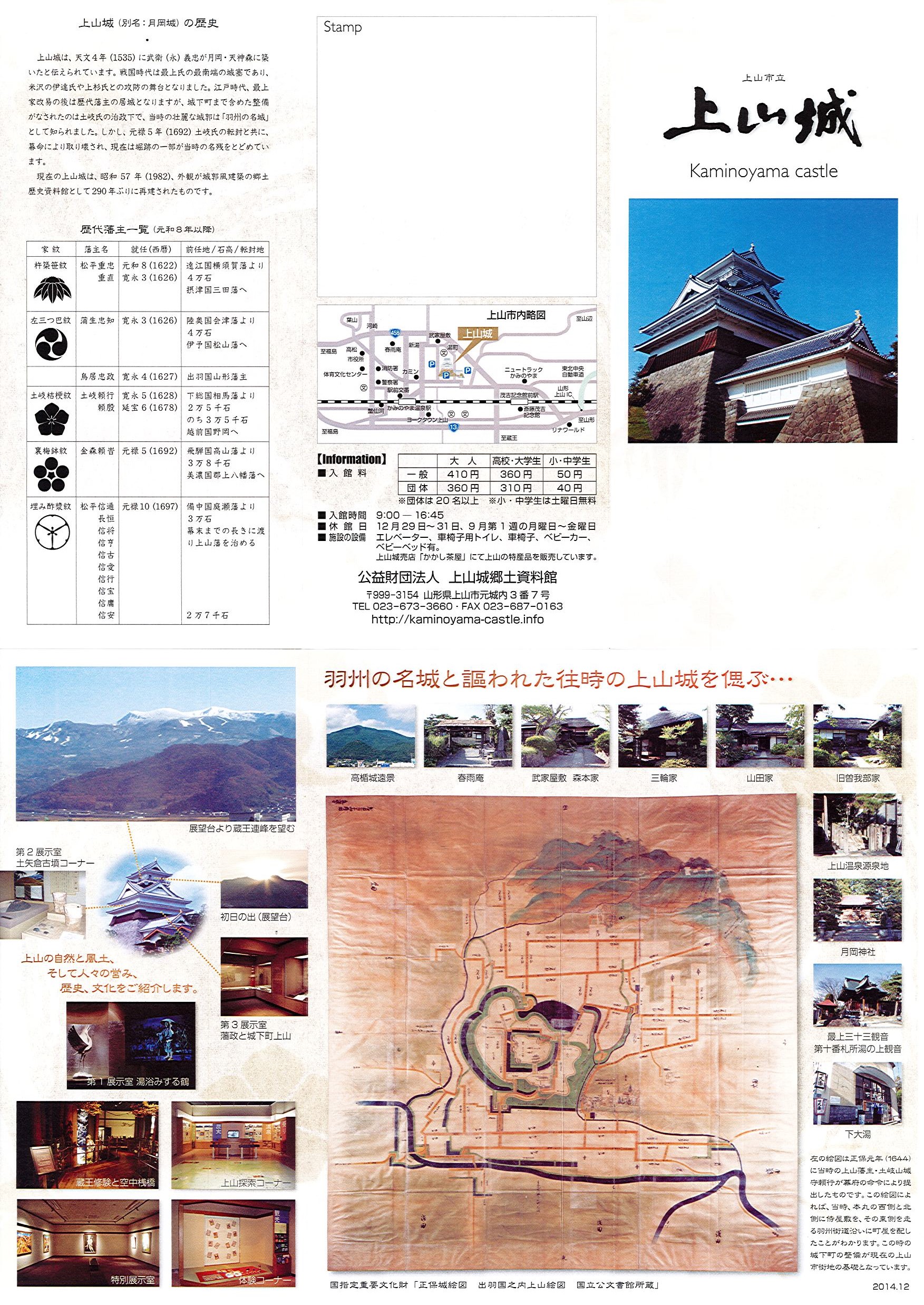 かつて「羽州の名城」と称えられた上山城。幕命により取り壊されてから290年ぶりに郷土資料館として再建された。かみのやま市街地には5箇所足湯があり、また5箇所の共同浴場は源泉掛け流しで料金150円と格安、難点は源泉が68℃と熱めのためモチロン湯船内も熱い!