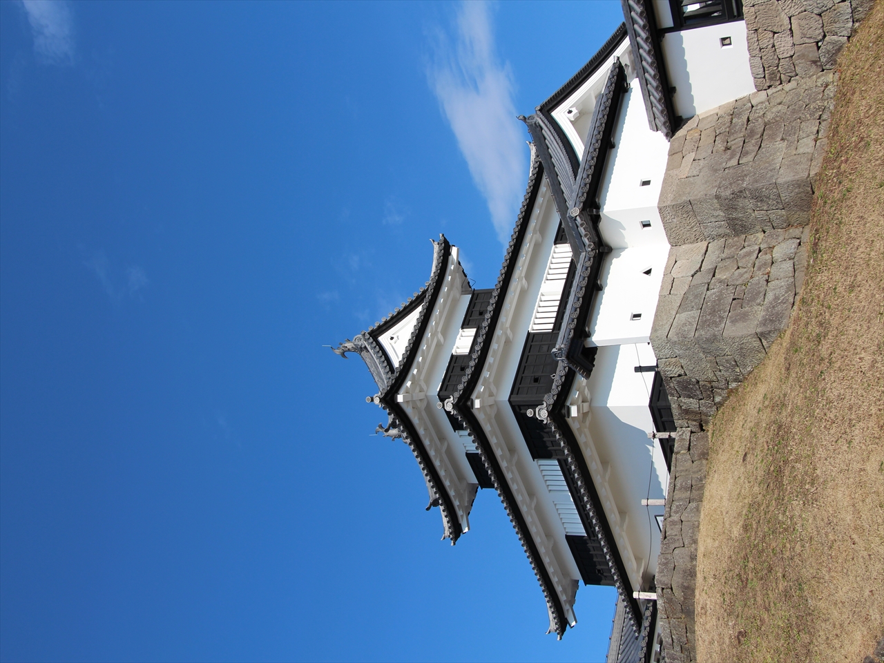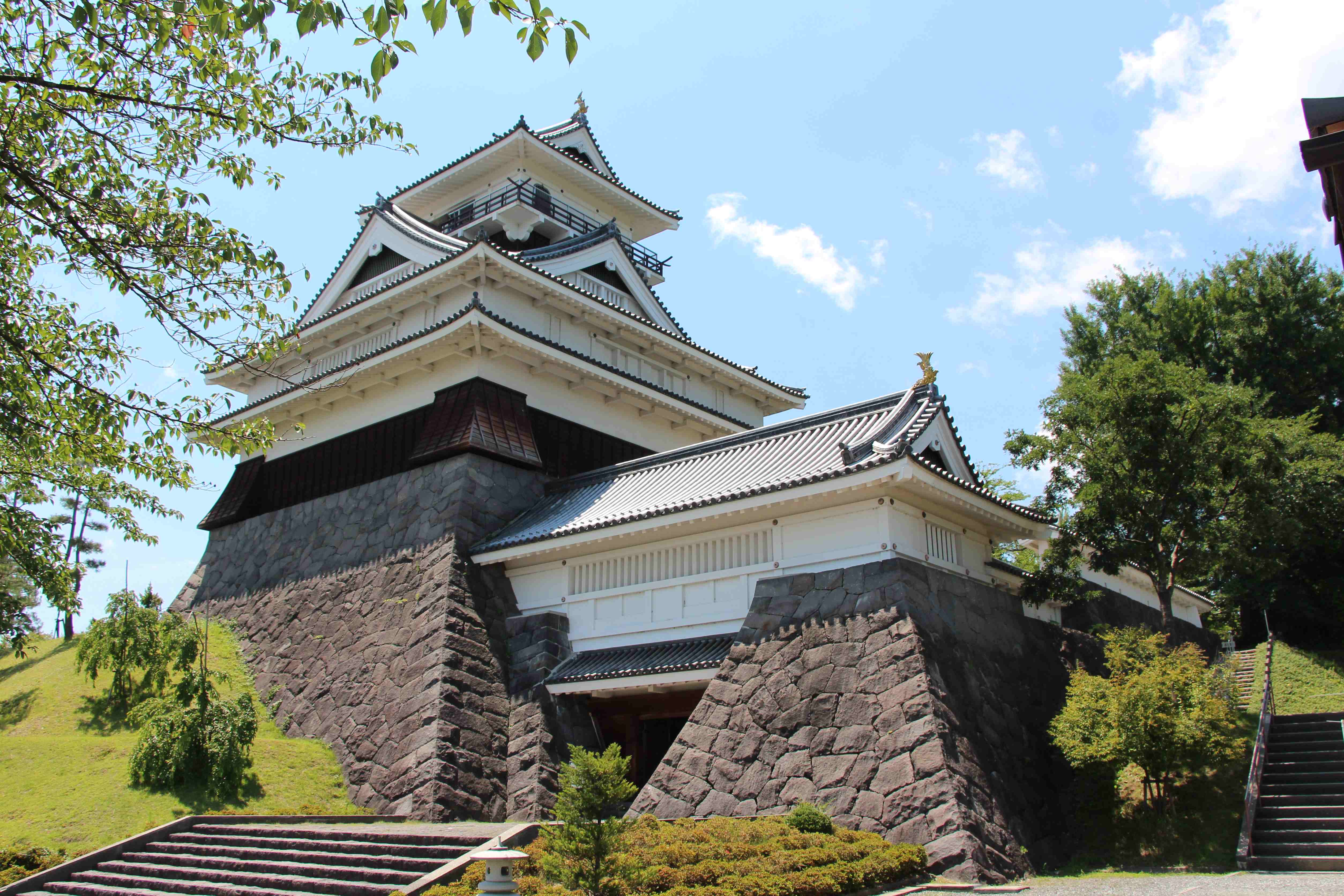 白河「小峰城」石垣の修復もだいぶ進んできましたね。青空に映えます。