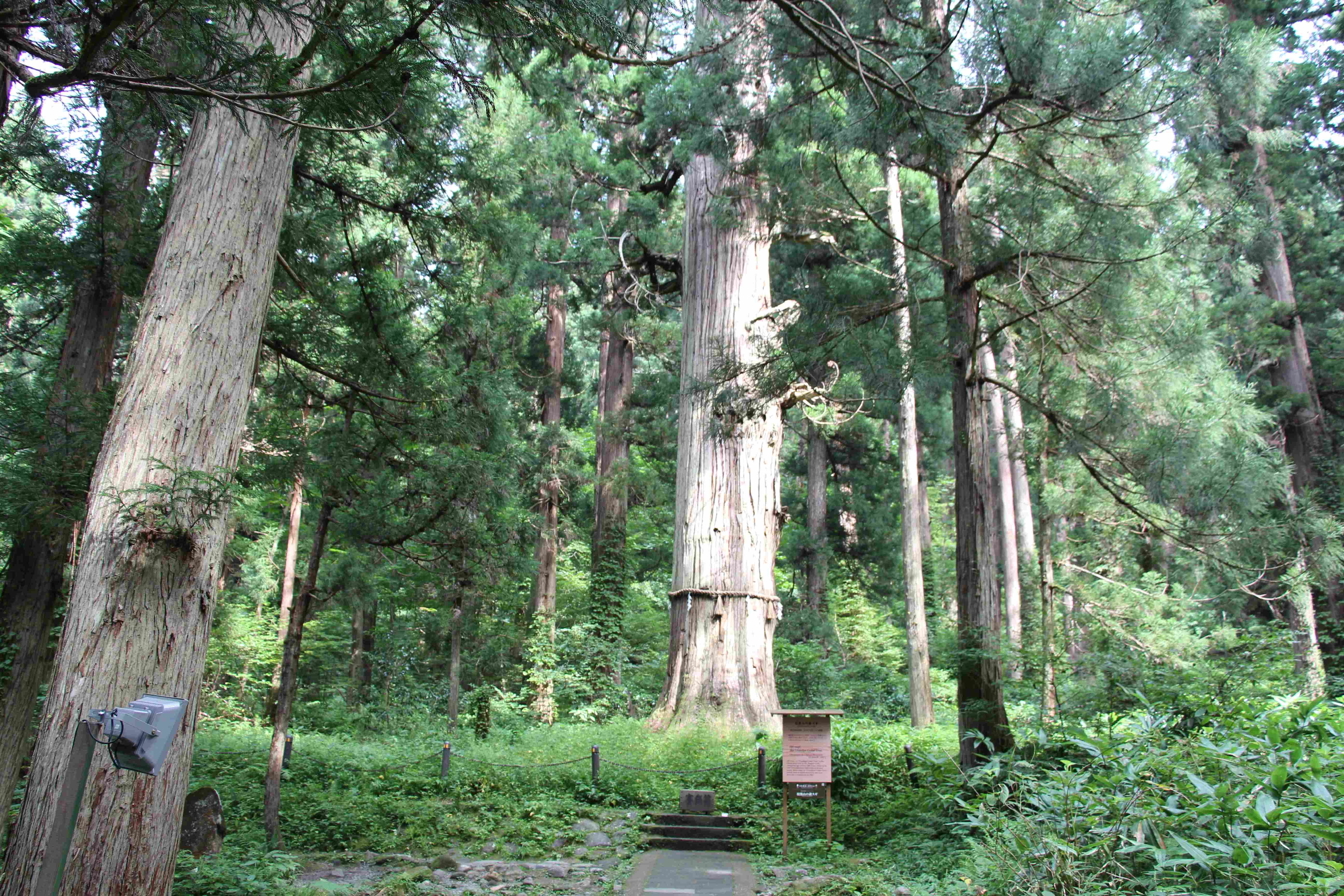 羽黒山三神合祭殿(国重文)、鐘楼・梵鐘(国重文) 爺スギ(国天然記念物) 庄内映画村(勇者ヨシヒコ→◯◯村) 羽黒山のスギ並木(国特別天然記念物)